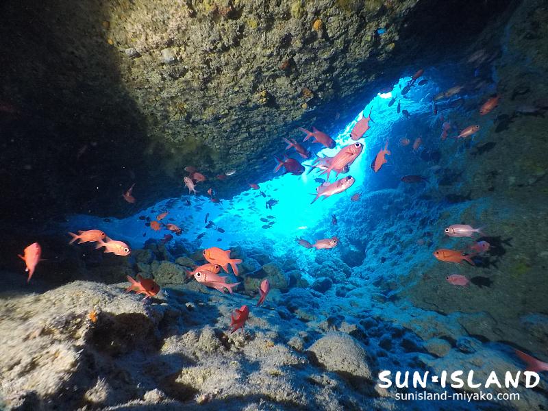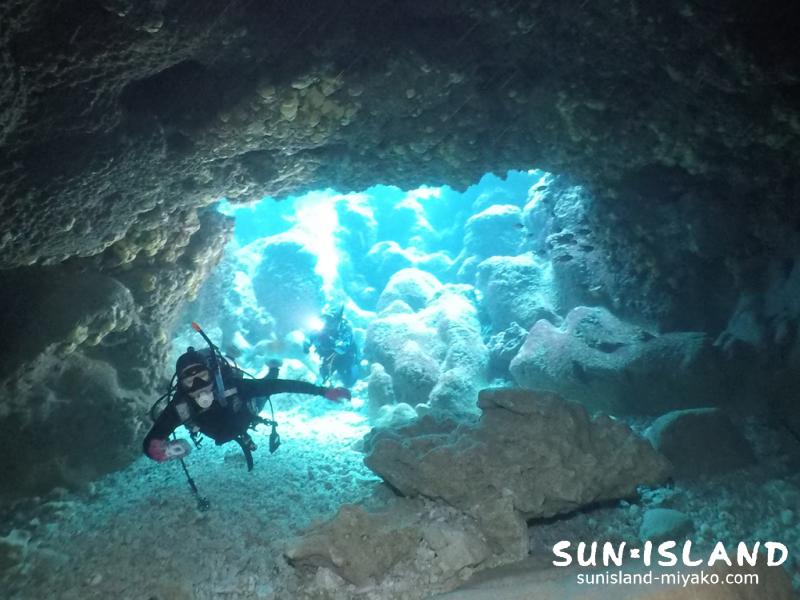 伊良部島ダイビングスポットの中で、一番長い洞窟が見所。
