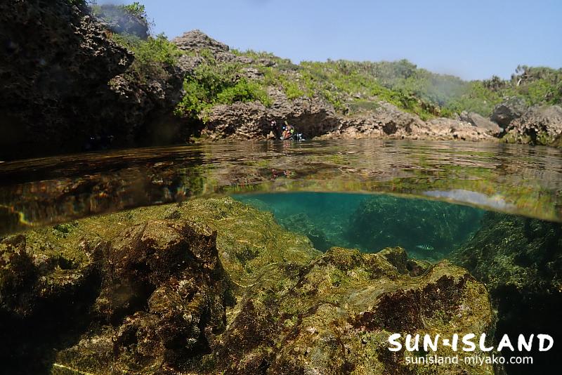 1度浮上して、青空の下、ぽっかり空いた池で休憩できちゃうポイント!あまりない宮古島ならではのこんな景色にHさん感激~と気に入って頂けたみたいです♪