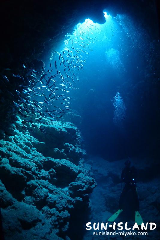 今日は、宮古島でのダイビングは初めてのゲストの方々とダイビング!ということで、1本目の『ムーンライトホール』でケーブ。2本目の『魔王の宮殿』ではホール。3本目の『ドロップNO,1』ではドロップオフ。と色々な地形をご案内。