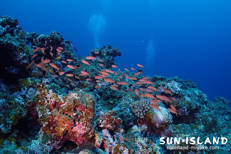 深度が浅くシンプルでビギナーでも安心して地形ダイビングが楽しめ、ウミウシや少生物も多いポイントとして有名なので幅広いダイバーに愛されている伊良部島を代表するポイントですね。