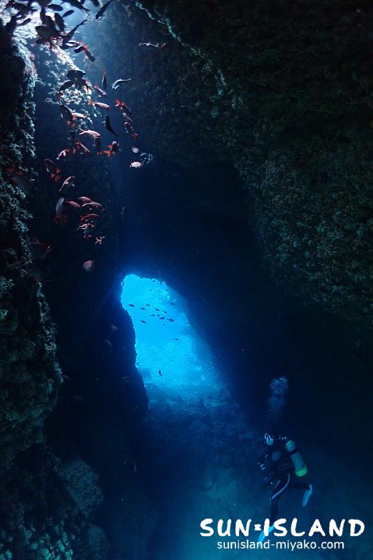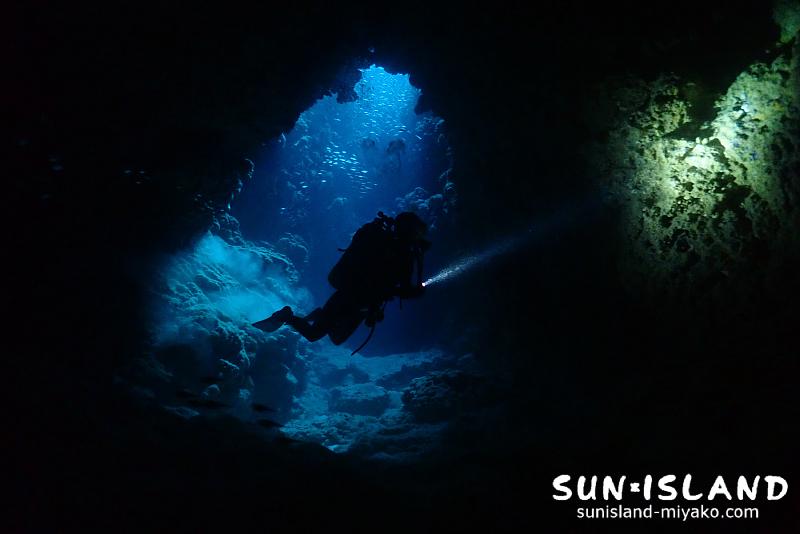 下地島エリアのポイントなので北寄りの風が吹く秋口~春先が比較的入れる確率は高いですが、夏のベタ凪の時に来れたらこのホールに真上からもっとはっきりとした光の柱がズドーンと差込みそれはもう最高な景色が待っているんだろうな~とそんな日を密かに夢見てます♪想像しただけでもにやけちゃいませんか?是非沢山の方と共有したい景色です。