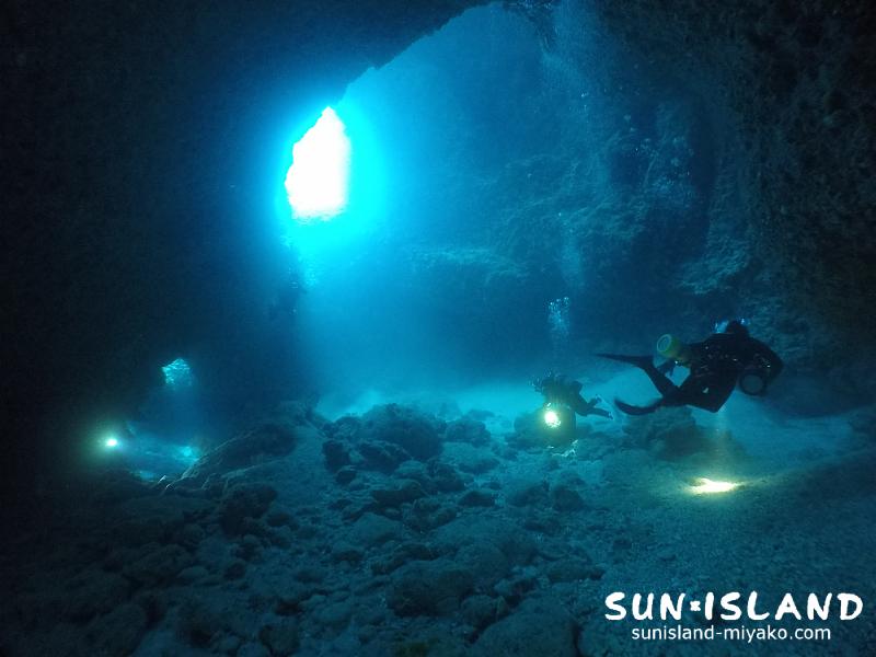 ホールに計5つの穴から光の差し込み、そして青さが見られとても幻想的でした。