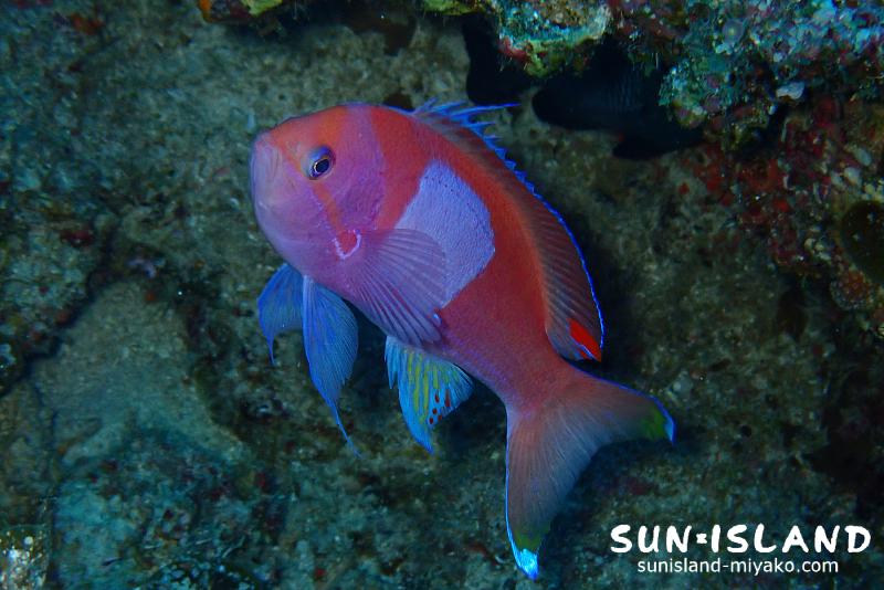 性転換するスミレナガハナダイの雄は、ライトで照らしたりフラッシュが上手く当たると体の鮮やかな色・柄がより映えますよ。