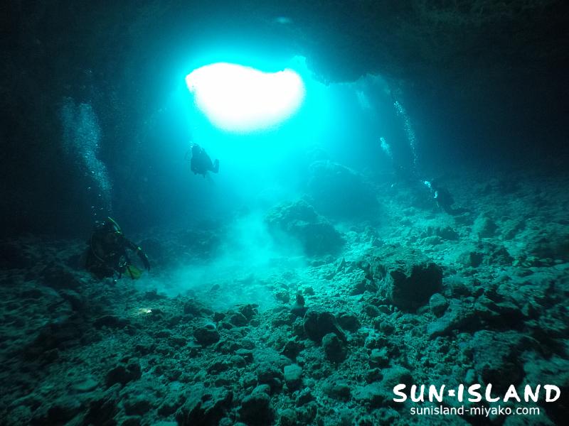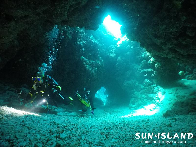 真っ暗な洞窟が続き、水中ライトがあたる視野を確保しながら進む洞窟探検や穴の造形美を楽しむホール・ドーム。