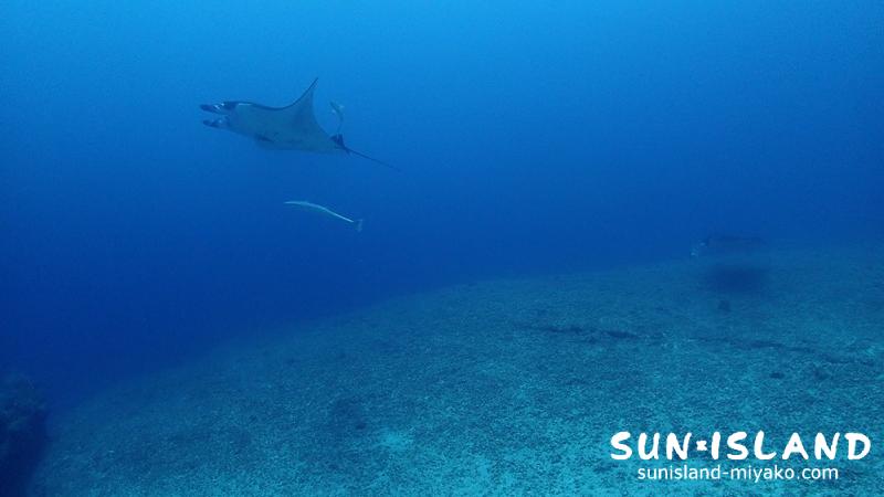 宮古島では11月頃から3月頃にかけてたまーに遭遇するマンタですが、こんな時期に遭遇するなんて。