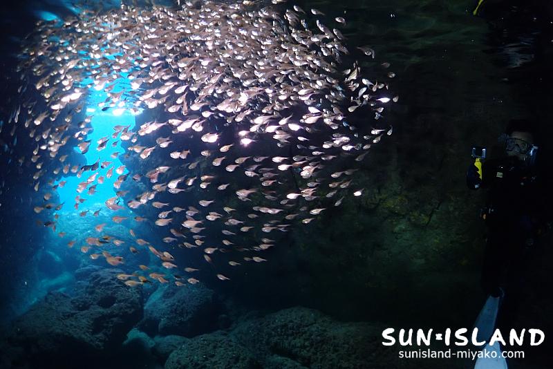 なんたって普段は悪いと言っても透明度は15m、良い時は40mオーバーの宮古島の海なので1本目のポイントの透明度5mの激濁りにはびっくりしました。宮古ブルーはどこへ?見慣れた景色も違った印象に。
