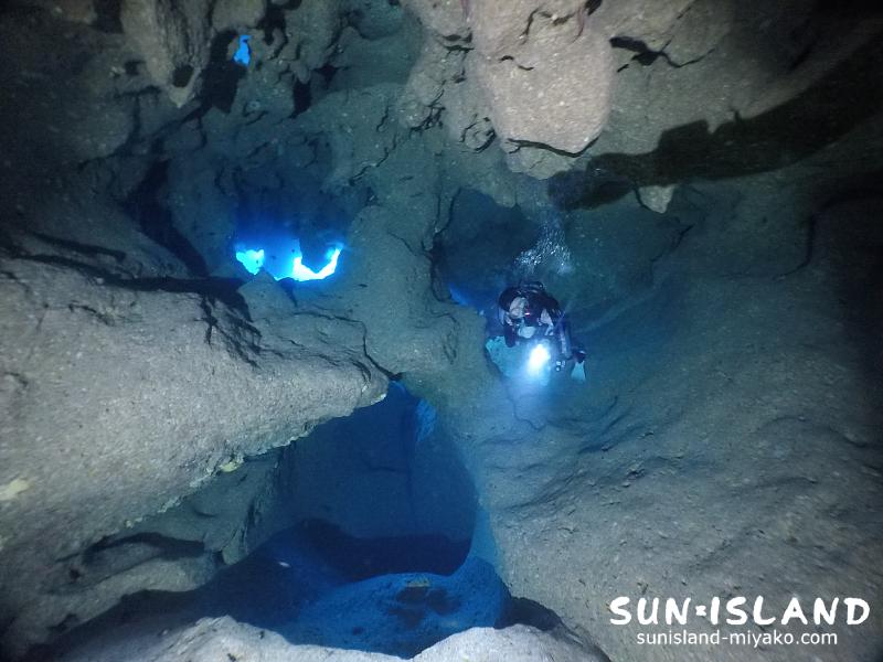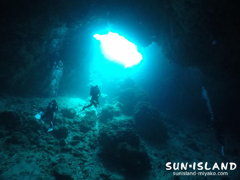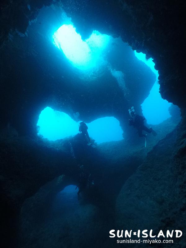 ここの洞窟の幅20mほどの宮古島ダイビングスポット・ポイントの中では、穴の規模が大きくダイナミックな造形美を楽しめる人気スポット・ポイント。