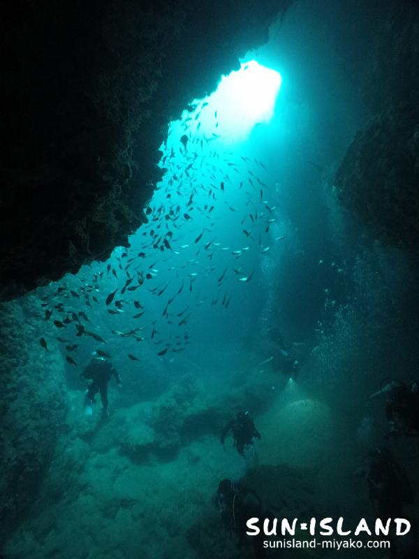 穴の造形美によく似合うミナミハタンポ・リュウキュウハタンポの群れがいい。