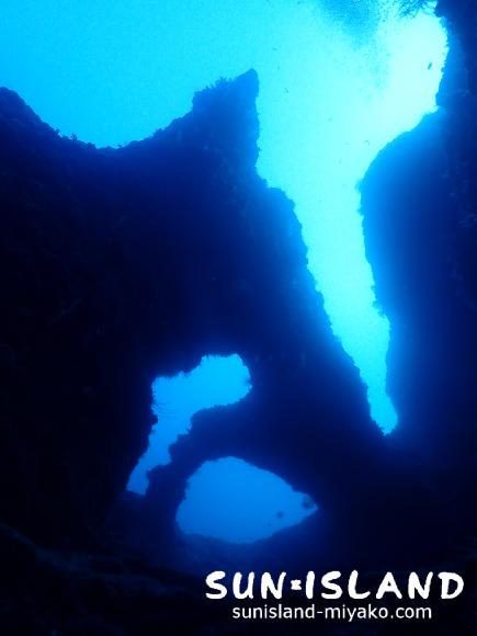 まず1本目は『アントニ・ガウディ』。宮古島三大地形ポイントのひとつです。MAX30~40メートル位のところにある、人が作ったような穴がいくつも空いていて色々なところから入ったり出たりアスレチックのような感覚が味わえます。Kさんは宮古のポイントの中でも1番行きたかったポイントだったようで最初から行けてとっても嬉しそうでした!