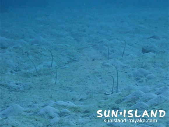 ラスト3本目は『ロックビューティー』へ。ここは宮古島でも数少ない”チンアナゴ”が見れるポイント。流れに向かってみんな同じ方向を見て餌を待ってる姿はなんとも愛くるしいです。でもすごく臆病なのであまり近づきすぎると、すぐに巣穴へ引っ込んでしまいます。皆さん写真など撮られる際はガイドの指示をよく守り、慎重に近づいて撮ってくださいね!