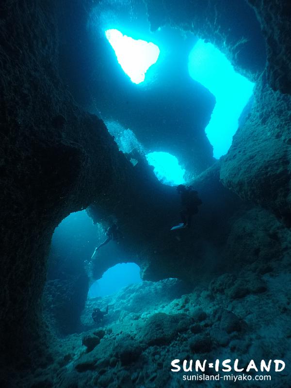 真っ暗な洞窟を水中ライトの光を頼りに進んでるときのワクワク感がたまらない方は、宮古島ダイビングの特徴とも言える地形ダイビングにハマってるかもですね。
