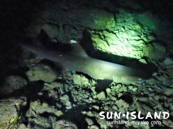続く2本目は『35ホール』へ。読み方は”サンゴホール”なので最初言葉で説明すると、皆さんサンゴ礁でできた穴だと思うかたが大勢いらっしゃるんですが、表記的には”35”でMAX深度のことを表しています。ちょっとややこしいですよね。笑 名前はややこしいですが地形としては、暗いので恐くもありつつダイナミックで冒険心をくすぐられます。ホールの中には1メートルほどの小さいホワイトチップもいてとっても可愛いですよ!!!