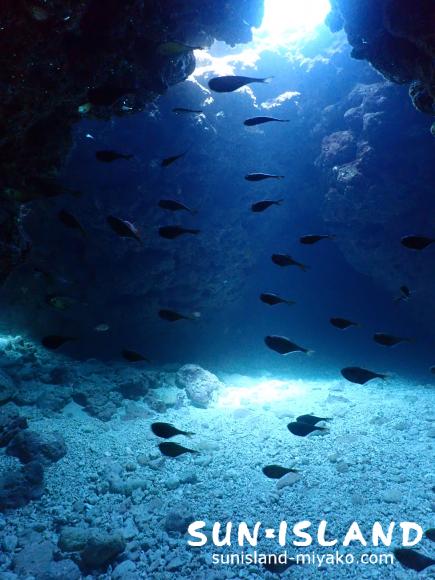 ラスト3本目は『なるほどザ・ケーブ』。全長30メートルくらいのケーブ(洞窟)を探検チックに進んでいきます。ところどころ天井に穴が空いていて、晴れているとそこからの光がとってもきれいです。ケーブの中にはアカマツカサやハタンポたちがたっくさんで、ライトを照らすと一斉に散らばる光景は何度見ても気持ちがいいですね。狭い場所、クレバス、ケーブが好きな方にはオススメのポイントです。メインの横にあるクレバスもなかなか楽しいですよ!太陽がある日はなおさらずーっと潜っていたくなります。