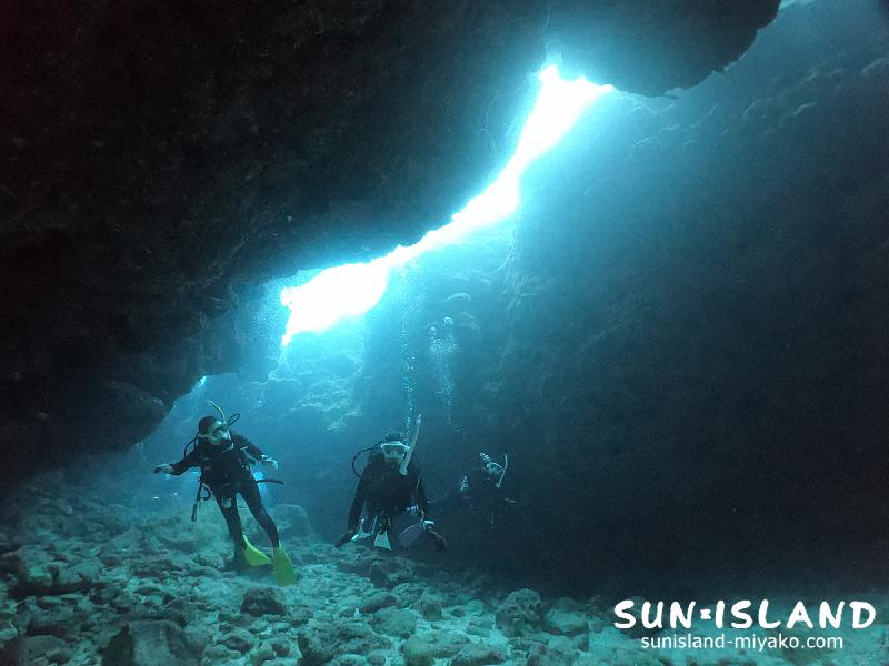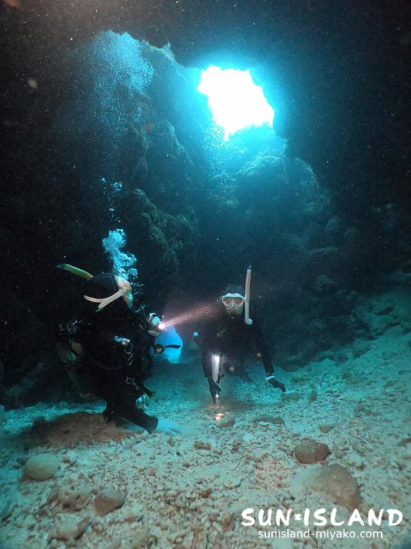 1本目は水深14mほどで洞窟探検ができる『なるほどザ・ケーブ』へ。