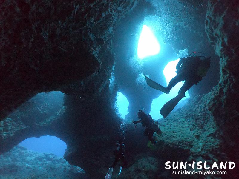 透視度25~30mオーバーのブルースクリーンに穴の造形美がマッチし、絶景でした。
