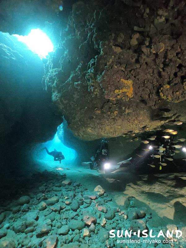 1本目、今日が宮古島ダイビング初めての皆さんは、スタッフ落合がご案内でチェックダイブを兼ね『ムーンライトホール』へ。