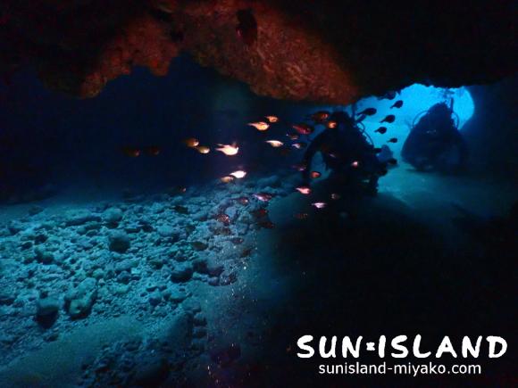 入る前から日が差し始め、光の差し込みも期待しましたが、角度的に見れず。しかし景観はすごくきれいで、洞窟探検のようなダイブにYさんたちもとても楽しんでくれたようで、私も嬉しくなりました。