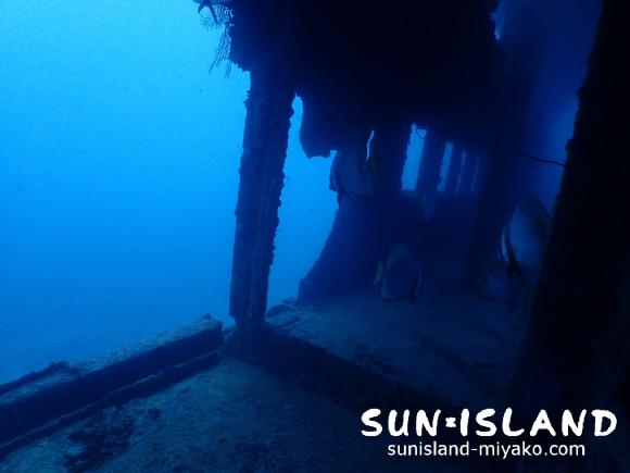 他のポイントに比べると透明度が低いので、まるで幽霊船を探検しているような気持ちになります。