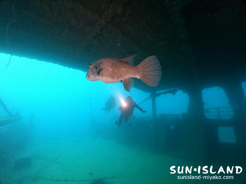 レジャーダイビングのなかで『沈船』ダイビングは頭上閉塞環境下の活動になり、なかなか潜る機会はありませんが、宮古島ダイビングスポット・ポイント『沈船』は、カーフェリーということもあり、広々とした空間もあり、容易にもぐることができます。