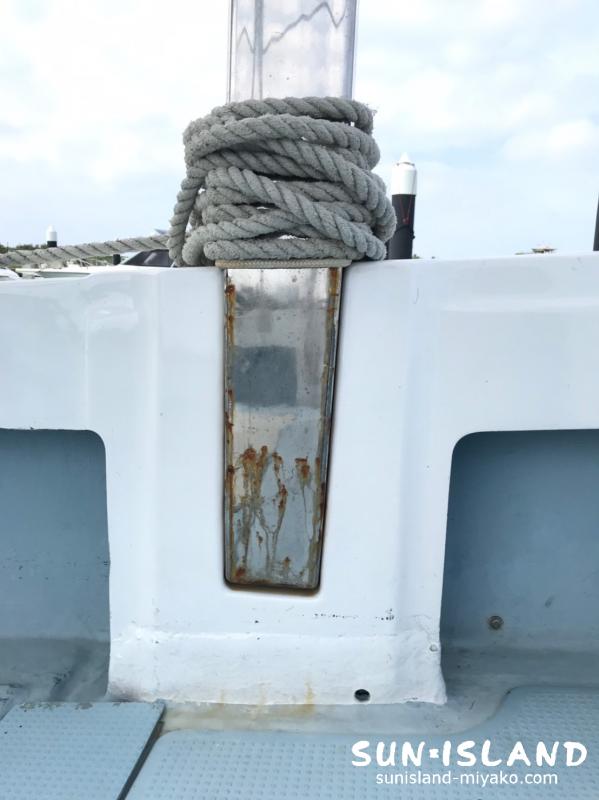 白い船体部分の黒っぽく汚れているところや、ステン部分のサビが目立つところを中心にワックスやコンパウンドを使ってキレイにしていきます。