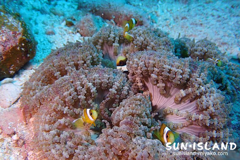 赤ちゃんクマノミがいっぱいのイソギンチャク発見、水中も春っぽくなってきました。これから徐々に水温も暖かくなると、もっともっと色んな生物や幼魚が増え賑やかになってきますよ。
