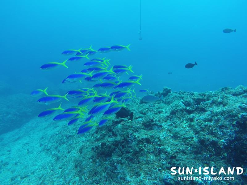 幻の大陸と称される『八重干潮』でのダイビングは、下地島・伊良部島と異なり、イソマグロやロウニンアジをはじめサンゴの群生が広がる沖縄らしい海。