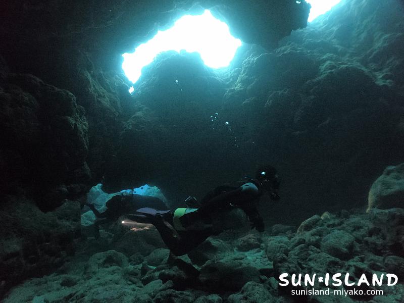 投資度25mほどあり、穴から見上げた海の青さが際立ち、明暗のコントラストも最高。