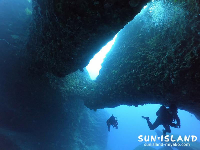 伊良部島ダイビングスポット・ポイント最大の穴から見る景色は最高。