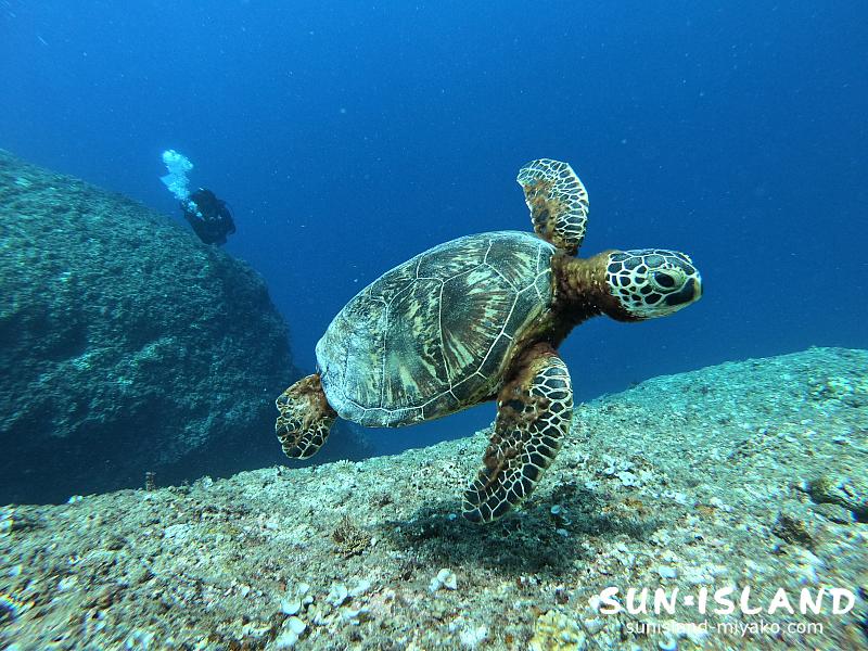 台風前という事もあり、若干下地島ダイビングスポット・ポイントはうねりが押し寄せてましたが、透視度20~25mほどあり、青さが際立つ水中世界はとってもキレイでしたよ!!
