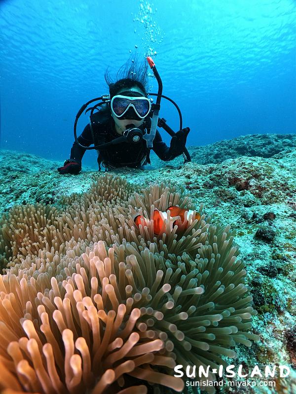 もしやクマノミ好き!?と、思い沖の根付くカクレクマノミを見にいきました。