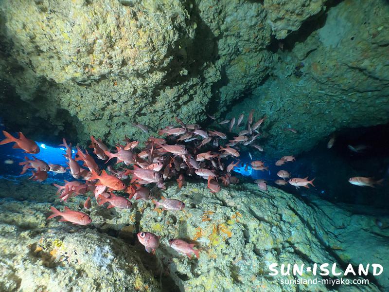 宮古島三大地形スポット・ポイント『魔王の宮殿』『アントニガウディ』『通り池』に比べると、あまりメジャーじゃありませんが、水中の造形は負けてませんよー。