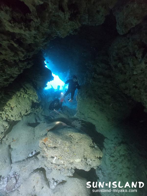 1本目はチェックダイブを兼ね最大水深10mほど且つ宮古島ダイビングらしい洞窟探検が楽しめる『ムーンライトホール』