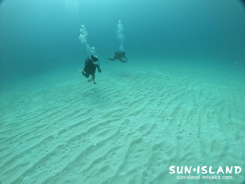 スカシテンジクダイやキンメモドキ、ケラマハナダイをはじめたくさんの魚たちを見たあとは、キレイな砂紋の上をプカプカと・・・