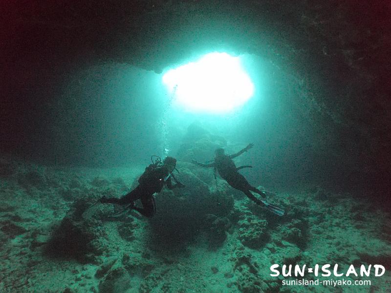 1本目は初心者の方も安心して宮古島ダイビングらしい『地形』を楽しむことができる『ムーンライトホール』へ。
