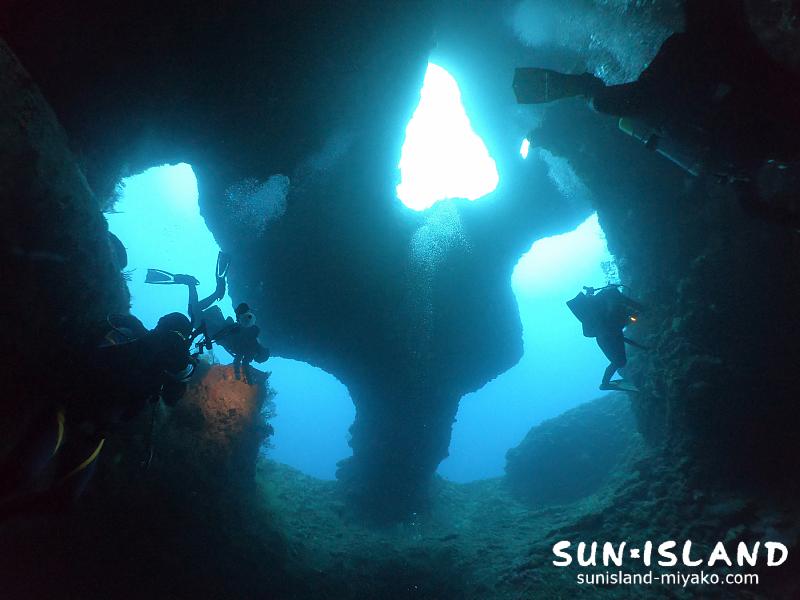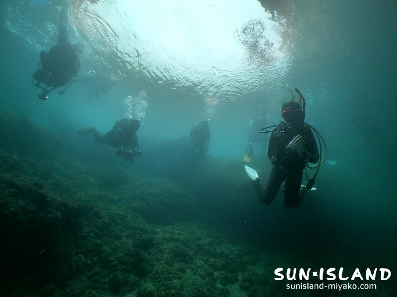 透視度がいいと、起伏に富むダイナミックな穴の造形美がウリの下地島ダイビングスポット・ポイントがとっても映えます!!