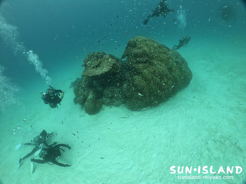 この立体的な穴の景色は、宮古島ダイビングスポット・ポイントの中でも特徴的。