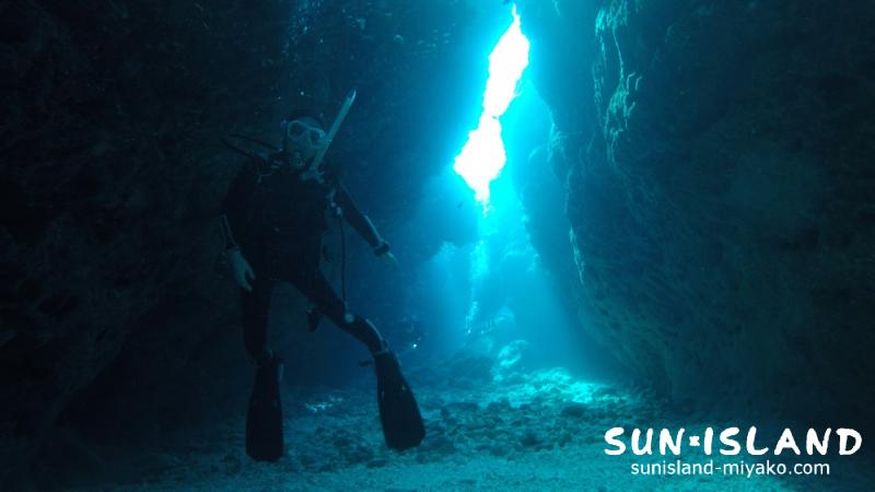 引き続きコース開催中のチームは、2本目『マリンレイク』にてカバーンコース。洞窟を潜ることに特化したコース内容で、洞窟環境の多い宮古島には最適!