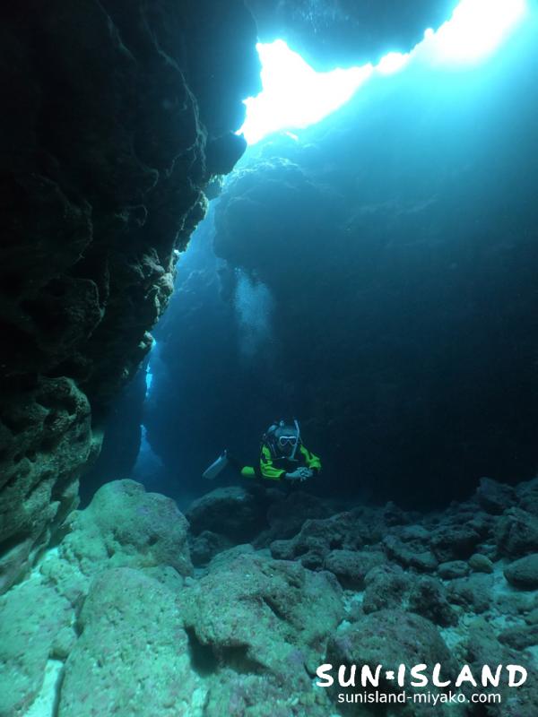 Oさん、ドライスーツでのダイビングにコツを掴んだようで、2本目は宮古島ダイビングらしい地形を見に『中の島チャネル』へ。