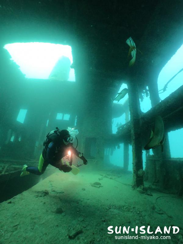 3本目は、コンディションがよかったので、この時期なかなか潜る機会がない宮古島と伊良部島の間に位置する『沈船』へ。