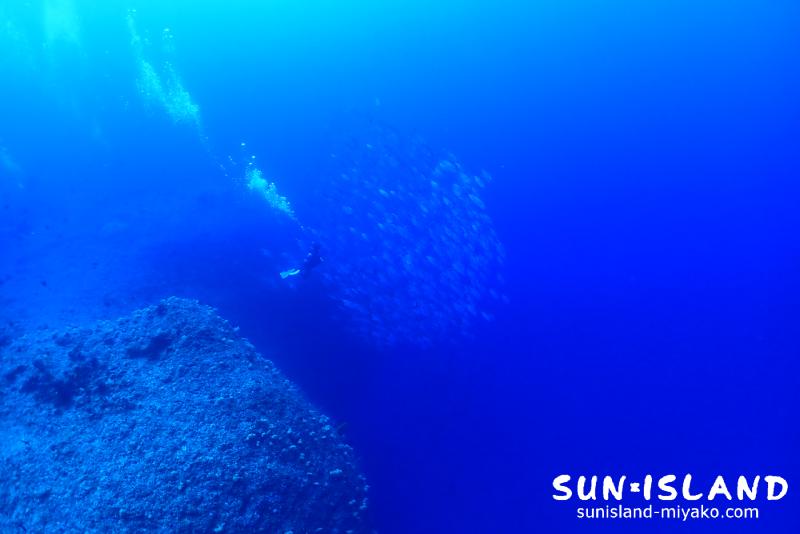 風も弱くインストラクターのみのチームで、ダイビング船の数も少なく伊良部・下地島エリアへそれぞれ別れているのでポイントの集中もありません。