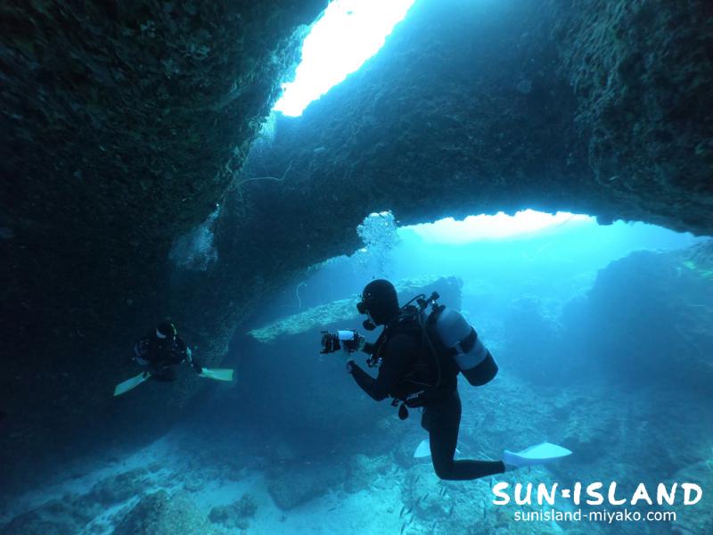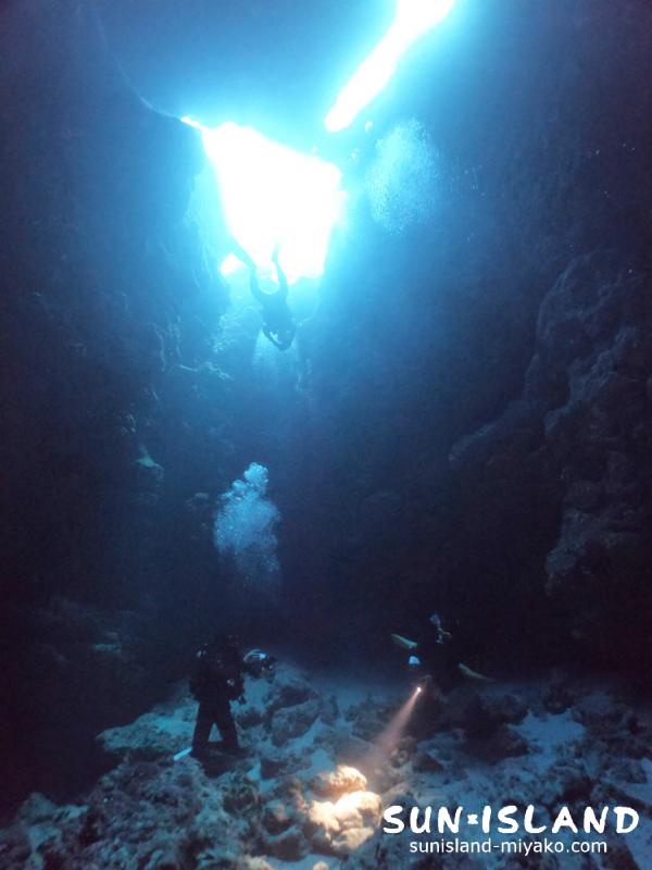 宮古島ダイビングらしい起伏に富むダイナミックな穴の造形美が美しい!!