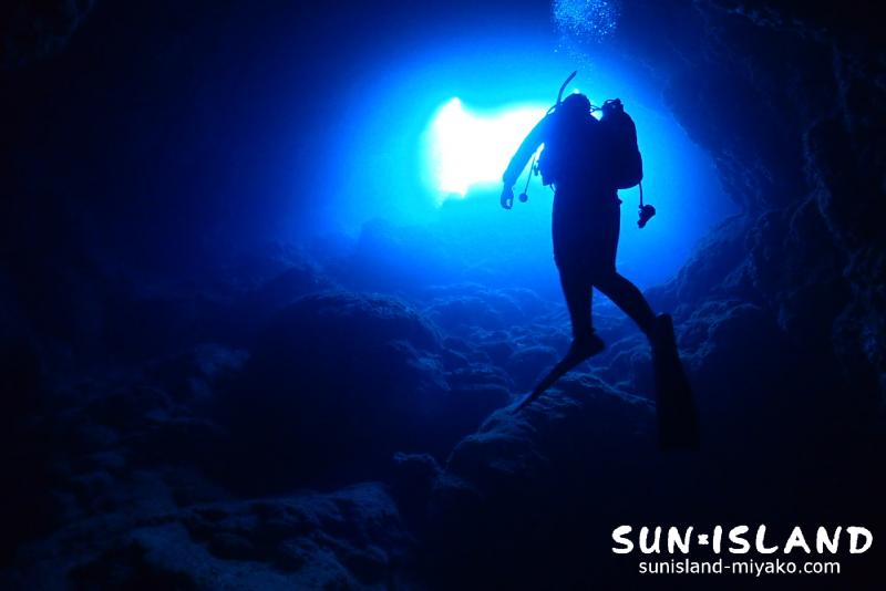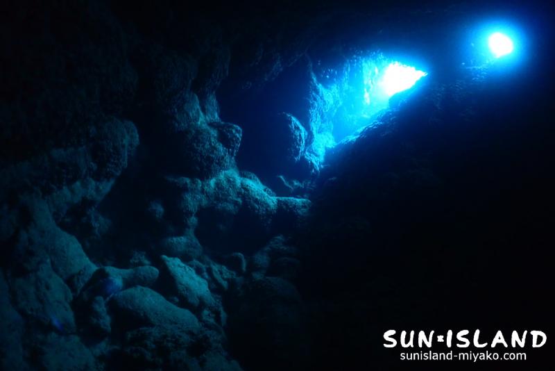 人が小さく感じる海の大きさを知るようなダイナミックなポイントが2本続きました。3本目はパターンを変えて細く狭い洞窟『なるほどザ・ケーブ』へ。