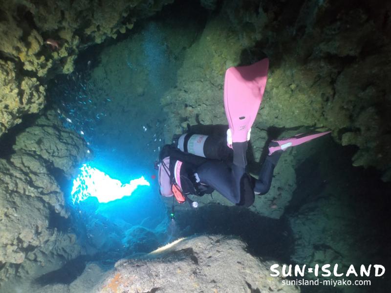 このダイビングスポットのメインでもあるトンネルの出口付近が見所なんですよー。