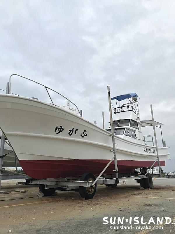 それから高圧洗浄機を使って、海に浮かべていると船底に付着してしまうフジツボや藻を落とし。