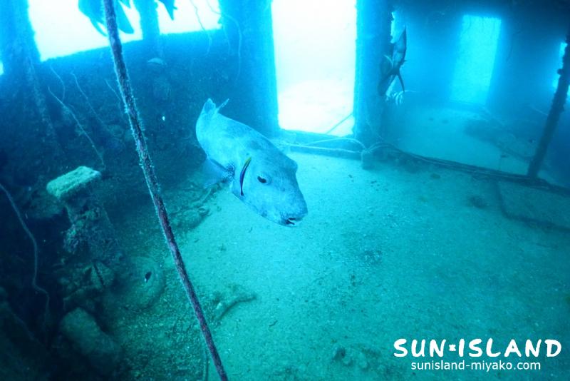 操船室にはひたすらクリーニングされて、だらだらお家時間中のモヨウフグ。