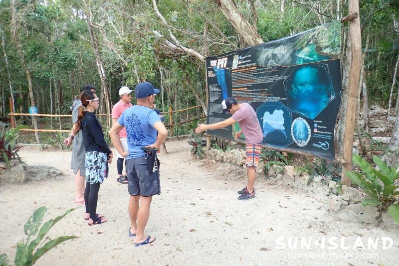 到着すると、器材のセッティングをしてまずはブリーフィング。ダイビング初日で、初めてご参加される方もいらっしゃるので、セノーテの成り立ちやダイビングルールを現地ガイドのムネさんに細かく紹介して頂き、確認しました。