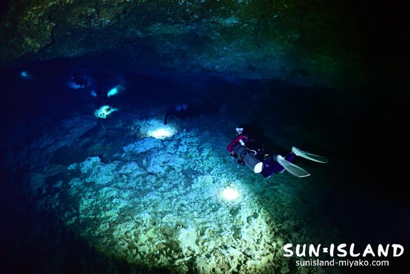 視野の確保のためダイビングスタートからエキジットまでライトはON状態。ガイドは光の数で人数を確認したりもします。もし光を遮りたい時は、胸に当てたり手で覆います。