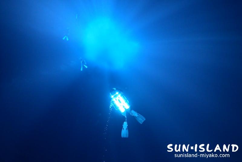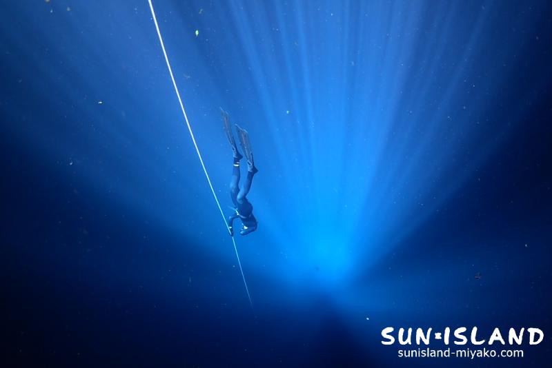 フリーダイバーにも人気なポイントらしく、安全停止中は練習風景を間近で見ることも出来ました。こんな光の中に溶けていけたらそれはもう気持ちの良いことでしょう。
