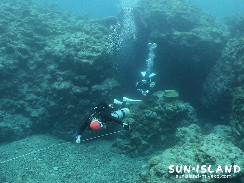 宮古島ダイビングスポットは、ほぼケーブではなくカバーンエリアが広がり、その環境に特化したコースがこのカバーンコースなんです。