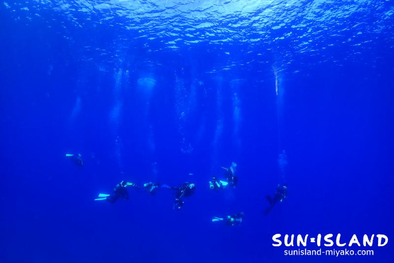 バラバラに離れてしまわないために、エントリー、エキジット、潜降、浮上、水中での移動、安全停止全て同じタイミングです。